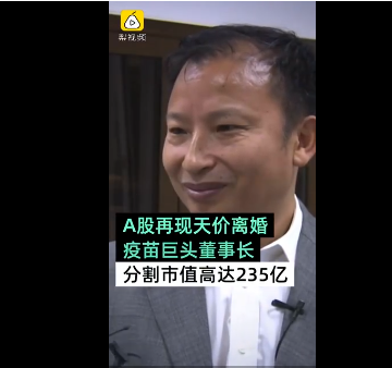 这个周末,,康泰生物大股东把23.99%股份分割给前妻,市值高达235亿元。